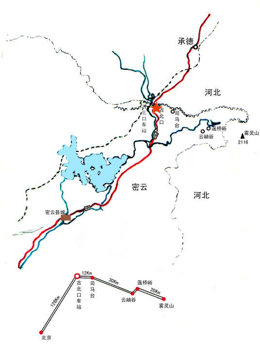 古北口距北京125公里,距密云縣城60公里,從北京到達古北口可以選擇: